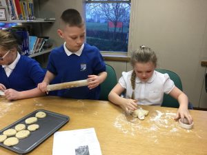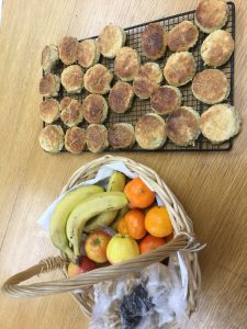 In Healthy Cookery Club today we made apple scones which will be on sale tomorrow for 25p each. We will also be selling packets of raisins and banana chips as well as cereal bars and fruit juice.