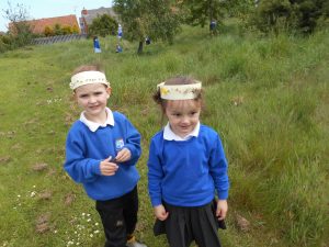 We checked progress with the wild seeds which we planted weeks ago and discovered that they have finally began to grow! We checked some of the photographs take with our outdoor camera and identified cats, pigeons and magpies enjoying our pond area! We also made Summer crowns and bracelets using some of the natural materials that we learned to identify on Thursday’s nature walk.