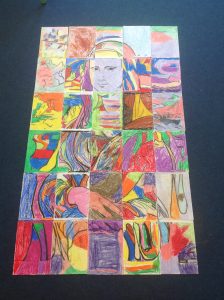 Linked to art week Owls created a giant portrait of the Mona Lisa. Each child in the class was given their own A4 part of the portrait to complete. They could decide what 3 colours to use and pattern. The children have made their very own Mona Lisa with bright vibrant colours. Make sure the next time you visit school you take a look at this master piece in the school hall.