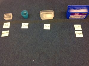 Owls have conducted another Science investigation. For this investigation they predicted what size container of ice would melt the quickest.They discussed the size of the container and if it held the most water or the least water would it melt the slowest or quickest when frozen then melted. The containers were put in the freezer for 24 hours then taken out for the children to monitor throughout the day. We checked them at 10.30am and 1pm. Their findings were that the smallest container melted the quickest and the biggest container melted the slowest.