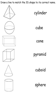 3D shapes – Can you draw a line to match the 3D shape to its name?