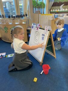 The children have had a fun week exploring number with the number blocks. They have explored different ways of making the same amount and matched to a numeral. They copied the stampolines and stamped lots of different ways of making the same amount. Super investigation and amazing counting! They have also enjoyed exploring all of the different maths activities in the indoor and outdoor environment.