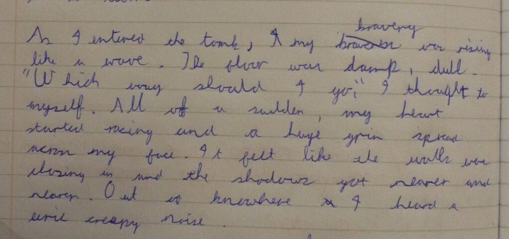 This week, Year 3 and Year 4 have been writing the Diary of Tadeo Jones (no relation of Bridget). Tadeo Jones is a fictional character whose adventures in an Egyptian Tomb were shared with children via a short animated video. From this video, children have planned and written diary entries as if they were the intrepid explorer.