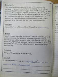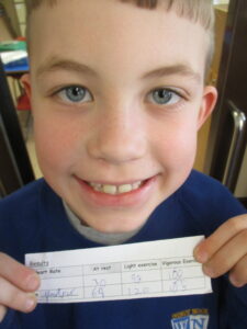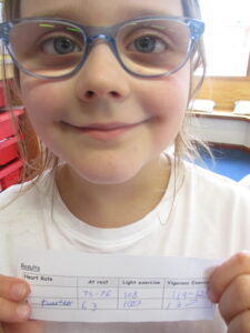 In LKS2 the children have been conducting investigations, examining the effects of exercise on our circulatory system. We began by learning about our circulatory system and the role it plays within our body. The children conducted two different investigations, one measuring breathlessness and another measuring heart rate. In Tulips the children found that they were the most breathless after vigorous exercise. Snowdrops found that their heart rates were the highest after vigorous exercise compared to after gentle exercise. Take a look at some photographs of our investigation in action.