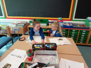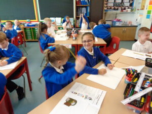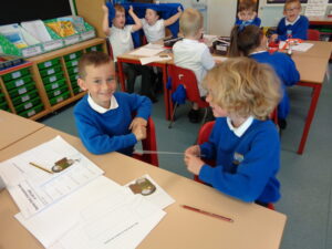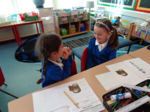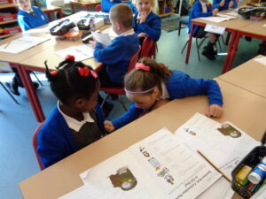 The children acted out the role using lots of expression. Later in their writing they all knew how to use exclamation marks and question marks.