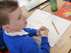 This week in years 3 and 4 the children have been investigating the hardness of different rocks. Last week, we learned about the three different rock types igneous, metamorphic and sedimentary. This week we tested six different rocks samples to see which rock was the hardest. First, we discussed how our investigation will remain fair and wrote a method and instructions list. The children then predicted which rock they thought would be the hardest and which would be the softest. Then, the children tested the six samples rubbing them with a screw, paper clip and their finger nail to assess the damage caused. Using their results the children then concluded which rock was the softest and which was the hardest.