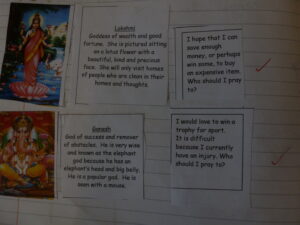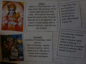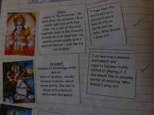 The Snowdrops, Tulips and Bluebells have done some superb research, reading and problem solving in this week’s RE lesson. They looked at the characteristics of various Hindu Gods and had to decide which Gods would be best at answering certain prayers e.g. if someone wanted more money, they might pray to the God of wealth, Lakshmi.