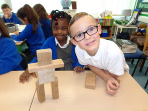 The sculptures are made from industrial materials so the children have been exploring a variety of materials and kits to create their own human forms just like Antony Gormley.