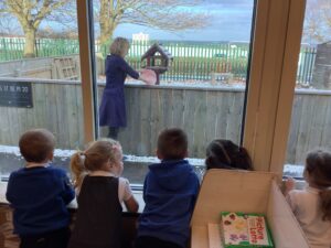 To introduce the Christmas season, we have focused on the story, Bear Stays Up. We have had great fun using props to act out the main parts of the story, making pop corn, making bear faces with brown play dough, creating bear pictures on the computer and searching for evergreen trees in our school grounds. We thoroughly enjoyed decorating a Christmas tree with tinsel and strings of beads. We also made some super hats which we will wear for our Christmas performance next week.