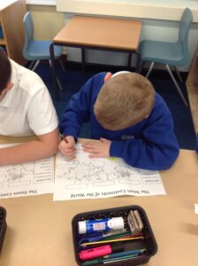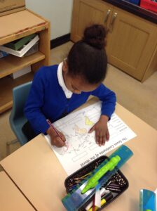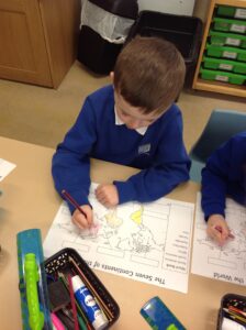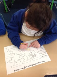 The children then found out about the seven continents and five oceans of the world. Using a map of the world they were able to locate and label some of these as well as locating Windy Nook in the UK and Ghana in Africa. The children are very excited to learn more about Windy Nook and Ghana this half term.