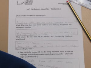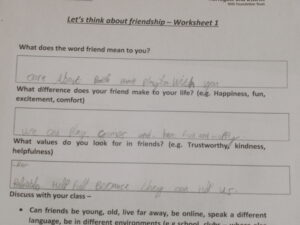 The workshop involved the children learning about what qualities they look for in a friend, how we can be a good friend, respecting each other and being kind.