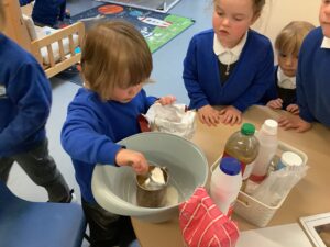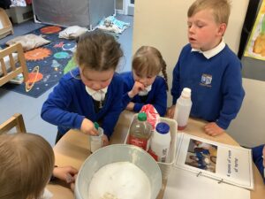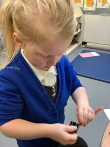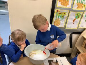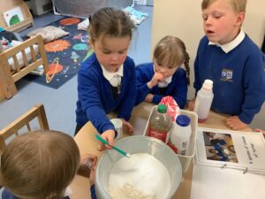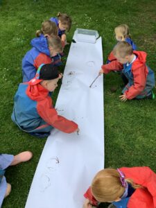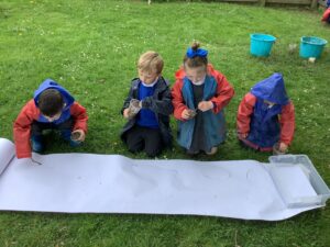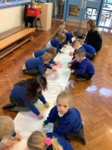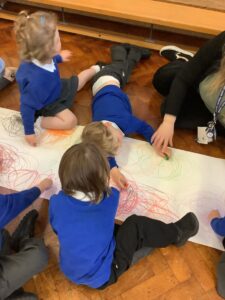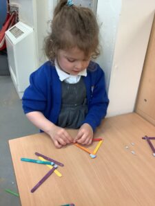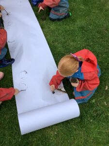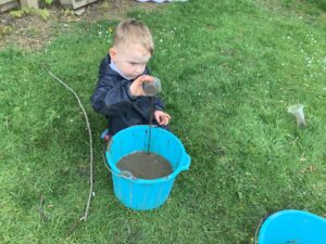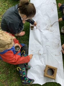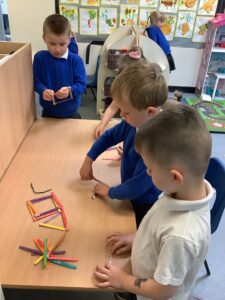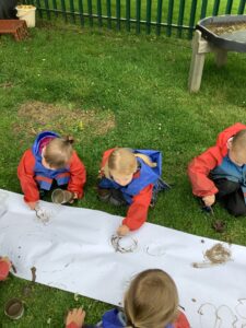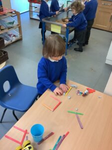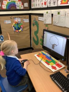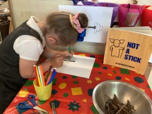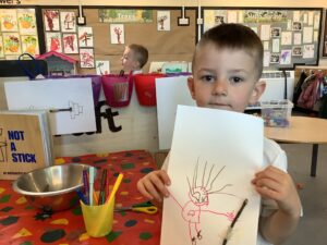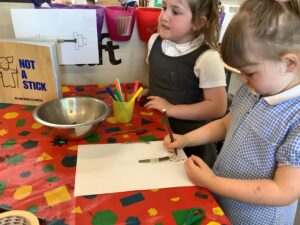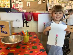 This week and next week our focus story is, Not a Stick. This week we have used our imaginations to pretend that a stick is is not a stick and that it is an object, which is what happens in the story. Some of us created a picture based around this idea and attached a stick to a piece of paper as the basis of a drawing. To continue our support for our new friends we have participated in collective action songs which involved a lot of opportunity to bond holding hands. We have produced individual trees on the computer, having first decided which season the tree would represent. We used lolly sticks and Blue tack to create shapes and patterns during maths. We made our own play dough and participated in Squiggle While you Wiggle. During our outdoor Friday session, we made our own mud paint and used sticks instead of paint brushes to create paintings.