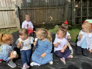 We have had another super busy week! We finished our Stick Man artwork and computer pictures as well as our usual tasks like, making play dough and participating in Squiggle While You Wiggle. We used our play dough to form some numbers as well as making Stick Man and his family tree. To commemorate the Queen’s Jubilee, we all made some fabulous crowns to wear and parade in front of the whole school. We also painted Union Jack flags and used real sticks as the mast/handle which we obtained during a stick hunt. We discussed the part in the Stick Man story when Stick Man says, “I’m not a mast for a silly old flag!” and acted out scenes from the story with our sticks. We all thoroughly enjoyed eating an ice cream from the visiting ice cream van and the children who stayed for lunch ate their food outside picnic style! A great day all round!