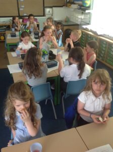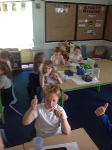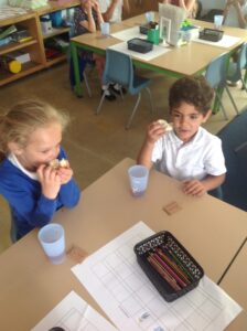 This half term the children have enjoyed learning about how Jewish families celebrate Shabbat. Shabbat is the Jewish Day of Rest. Shabbat happens each week from sunset on Friday to sunset on Saturday. During Shabbat, Jewish people remember the story of creation from the Torah where God created the world in 6 days and rested on the 7th day. Different Jewish people celebrate Shabbat in different ways. The children came to school in their party clothes to have their own Shabbat celebration in class. They enjoyed tasting grape juice, Jack and Jill biscuits and challah bread.