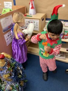 Christmas has arrived in Reception, on the 1st of December as part of our learning in RE, we talked about advent and began our own advent calendar that tells us the Christmas story each day. We also decorated the Christmas tree and explored our new Santa’s Grotto role play area. The children have been busy wrapping presents and writing letters and lists, posting them to Santa at the North Pole in our very own letterbox.