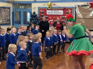 Our Reception and Nursery children have had a fun filled morning watching The Clumsiest Elf show. They were a fabulous audience and joined in with dancing and actions when Effie (the elf) asked them to. As the title of the show suggests, Effie was really clumsy and kept tripping up which made us laugh!