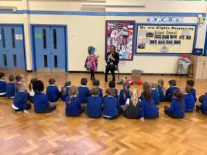 Maria from Gateshead Library service came to launch this years Book Start with this years Reception children, she read the children two stories all about monsters. The stories were called ‘Don’t Call Me Sweet!’ by Smriti Prasadam and ‘We’re Going to Find a Monster’ by Malorie Blackman.