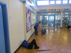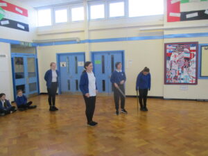 Over the past couple of weeks, Year 6 have been reading and enjoying Romeo and Juliet by William Shakespeare. This week, we developed our speaking and listening skills by acting out the fight scene between Tybalt, Mercutio and Romeo. The hall became our theatre and we became the actors, giving some outstanding and very dramatic performances! We will use this to inspire our newspaper report writing – look out for the finished articles next week.