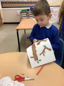 This week the children have enjoyed listening to the story ‘Stickman’ by Julia Donaldson. As part of their physical development children have been practising using scissors, the children showed great skill cutting around the different parts of the Stickman. They then used split pins to attach the parts together. Next week, the children will write a caption about their Stickman!