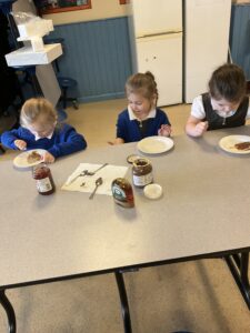 Linked to our text ‘Mr Wolf’s Pancakes’, we have been busy cooking our own pancakes. On Thursday, we used the recipe book that the Nursery children had made to find out what ingredients and equipment we needed. Then, we measured, mixed and cooked our pancakes noticing the changes that happened to the batter when it was heated. Finally, we chose which topping we would like and ate them all up!