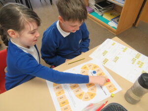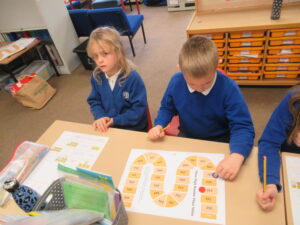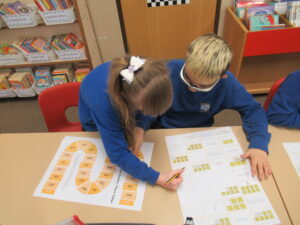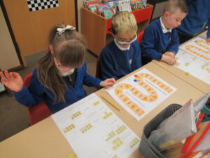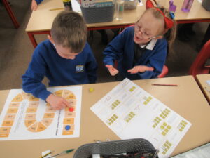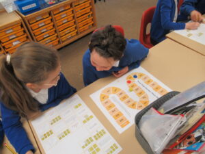 Today in maths, the children in Bluebells played a board game to practice their place value skills. They were challenged to find the correct representation. Representations included place value counters, dienes, part-whole models, partitioning and pace value grids. The children showed a super understanding of 3-digit place value and had lots of fun. Well done Bluebells!