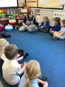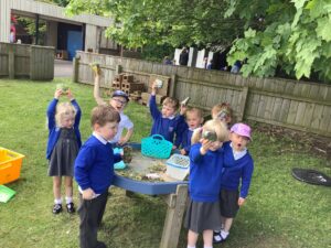 We have had a super week being scientists and thinking about how to look after our planet this week. We examined our mini wormeries daily using magnifying glasses to see if the worms had made any tunnels or ate any food. On Friday when we looked at our wormeries for the final time we concluded that the worms had mixed up the layers of sand and soil as they dug tunnels which helped us understand the important job worms do in soil. We tipped our wormeries into our compost bin so that the worms could continue to thrive and help turn the compostable materials into compost.