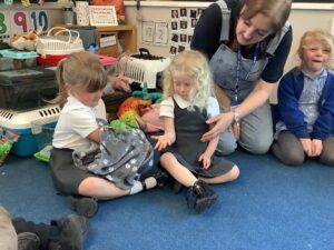 We have talked about what we already do in nursery to re-use, recycle and how to be resourceful. As you know, we are already expert composters in nursery. This week we extracted some cardboard, in the form of rolls and egg boxes from our junk model box so that we could add it to our compost bin to help with the consistency. We practised our cutting skills as we cut up the cardboard and also teared it to help strengthen our hands. We weeded one of planting boxes so that we could plant some wild flower seeds which the school was given as part of the King’s coronation celebration. We talked about how this would hopefully encourage wildlife and teach us how they grow as well as how to care for them. We have been mindful this week about saving electricity and turned lights off when we went outdoors or if we felt that it was bright enough in our classroom without lights on. On Thursday we reused some plastic bottles to make a rotbot. We collected some grass cuttings, brown and green leaves, compostable food from our school kitchen and the cardboard that we have been cutting and tearing all week and put it in our bottles. We are going to keep the bottles for six weeks by which time we hope they will have decomposed into compost. We are hoping to plant seeds in our rotbots. We reused the end the water from our water trays at the end of the day to water our plants.