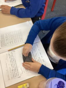 This week, the Year 3/4 children have been investigating the hardness of different rocks. The children planned their comparative test of rocks such as flint, basalt, limestone, granite and marble. They then made predictions and tested the rocks by scratching the surfaces with different objects.
