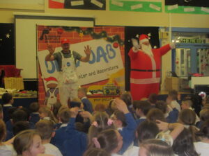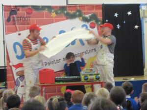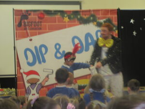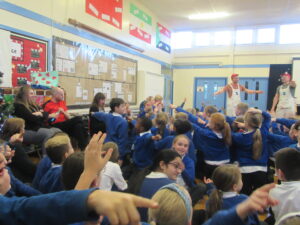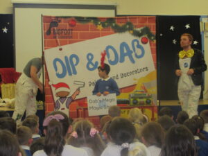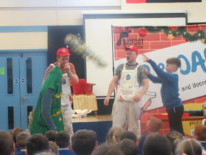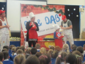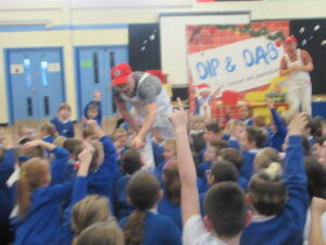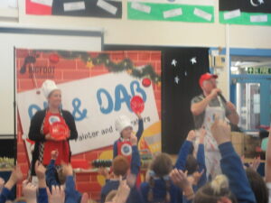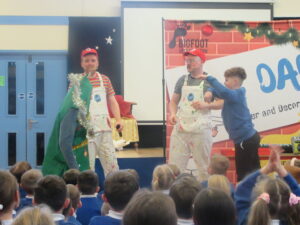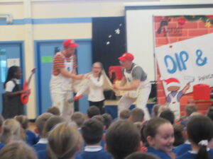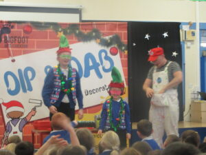 Today, KS1 and 2 had a visit from Dip and Dab from the BigFoot Arts Company. They put on a hilarious panto for the children and everyone joined in to have a fantastic time. Thank you to all of the parents and carers for your contributions to allow us to give the children these experiences.