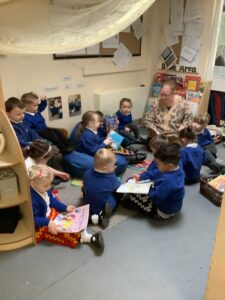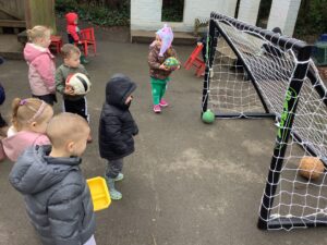 We have made links to most of the areas of the curriculum in nursery this week during our Mother’s Day activities. We made a gift bag for our mams consisting of home made compost, a plant pot, and a ‘special’ seed which we carefully wrapped up and secured with a pipe cleaner. We are looking forward to helping our mams plant the seed and care for it. Staff are looking forward to hearing/seeing updates of any growth that occurs! As we prepared our gift bags we counted how many scoops of compost we used as we put it into a bag. We also made links to Science Week which commences today, discussing the fact that some of us have been collecting and adding compostable materials for that last year and putting it in our compost bin and how it has now decomposed and can now be now used. We completed our Mother’s Day cards. We folded a piece of card and attached the beautiful daffodil drawings that we made last week to the front of the card. We then glued a greeting insert into the inside of our card and wrote on our name. During our maths sessions we made repeating patterns using our voices, bodies and instruments. We participated in our weekly Squiggle While You Wiggle session. We produced some beautiful flower and plant pictures using the interactive white board. On Thursday we enjoyed lots of stories for World Book Day. WHS kindly donated some books for us to keep and take home which our Special Helpers collected for us from the other end of our school. On Friday we practiced football skills for Let Girls Play Day. We assembled a brand new football goal during the morning and then practised scoring goals in it during the afternoon.