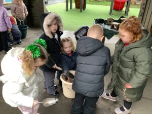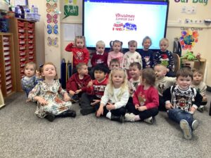 We also watched Reception perform their dress rehearsal for the Nativity – it was absolutely brilliant! In maths, we explored movement patterns by counting claps, stamps, and other actions. At the craft table, we practiced attaching junk materials with masking tape, and some of us even managed to create small vehicles. For phonological awareness, we worked on rhyming words through fun games and activities. During outdoor time, we planted tulip bulbs – we can’t wait to see them bloom in spring! On Friday, we loved wearing our Christmas jumpers to nursery and sharing the festive spirit.