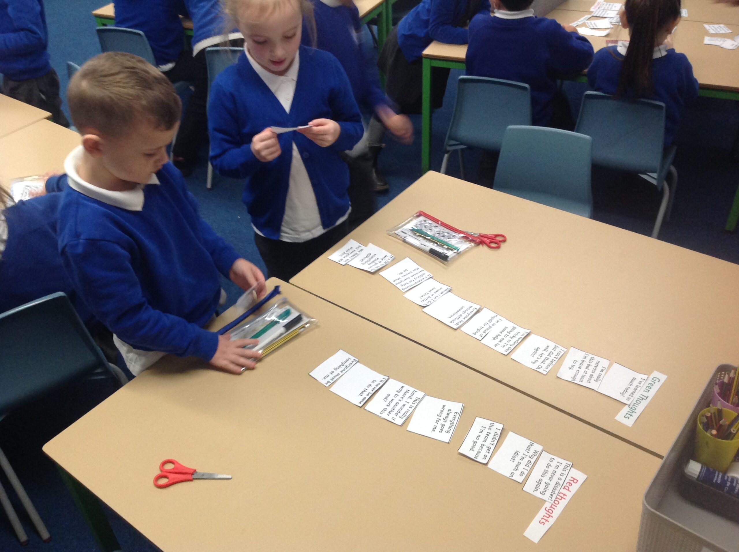 Over the last 2 weeks in PSHE, KS1 have been thinking about fight, flight, freeze. When we are worried or anxious, we react in one of these ways. We then sorted red and green thoughts and discussed why we put each card in that category.