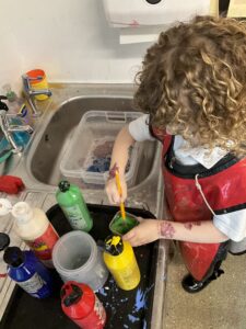 This week the children explored colour mixing and were often amazed by the surprising new colours they created. They made thoughtful predictions, tested ideas, and used vocabulary such as “lighter”, “darker”, and “shade”. We were especially proud of the independence they showed, choosing their own resources, trying out different combinations, and talking confidently about what they noticed. The children even washed up their mixing pots and brushes when they were finished. Their creativity and curiosity helped them deepen their understanding of how colours can change and blend. It has been amazing to watch their sense of discovery about colour throughout the week.