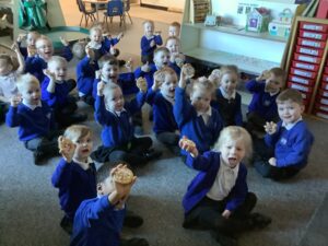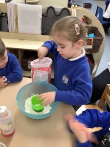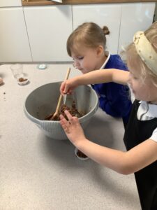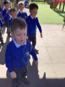 This week in Nursery, we focused on Easter and explored the Easter story together. Our playdough area had a special Easter and new‑life theme, complete with Easter chicks and spring decorations to spark imaginative play. We finished our Easter cards by writing names on the inserts of the cards we began last week, and we had great fun making chocolate nests using shredded wheat and melted chocolate—this led to some lovely science learning as we observed chocolate changing from solid to liquid, and then back to solid again once set. During our physical development and music session, we listened to classical pieces such as Morning Mood by Edvard Grieg, The Swan by Saint‑Saëns, and Debussy’s Arabesque. The children moved their bodies in response to the tempo and mood of each piece, imagining themselves as spring animals like bunnies and chicks. We also visited the school hall to view all of the wonderful paste‑egg competition entries from across the whole school—there was lots of excitement as the children spotted their favourites and admired the creativity on display! On Friday, we had a very exciting outdoor session—the Easter Bunny had visited our nursery garden! The children were thrilled to discover chocolates hidden among the plants and playground equipment! Some of us re-potted the lupin seedlings and spinach plants that we plated in the Winter which have outgrown their pots.