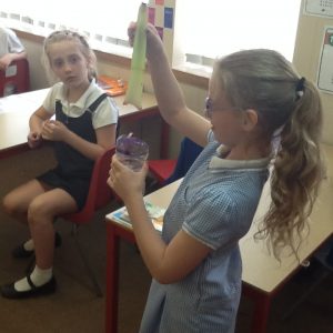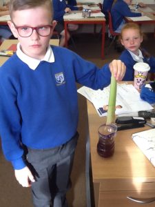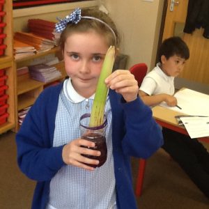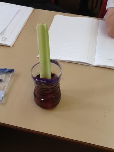 Over the last week in Bluebells, we have been looking at plants and what they need to survive. The children have lead their own experiment to investigate how water travels through a plant. For our experiment, we placed some celery in a container of coloured water. Each day we observed how the celery changed colour as the water moved further up the plant. We found that the water was transported over a number of days. The celery gradually turned more red, but eventually stopped and stayed the same as the water begun to evaporate The Bluebells took ownership of this project remembering to check it each day and wrote a fantastic investigation.
